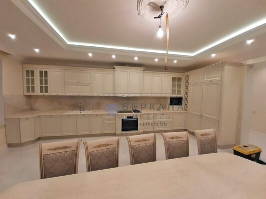 Изысканный и элегантный дизайн с изогнутыми линиями, резьбой и декоративными элементами, придающий гардеробной роскошный вид