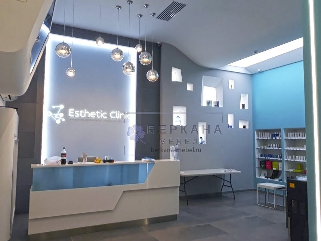 Наша компания выполнила грандиозный, комплексный проект для медицинской клиники «Эстетика». С удовольствием делимся изделиями из проекта. Офис компании, учреждения начинается с приемной.